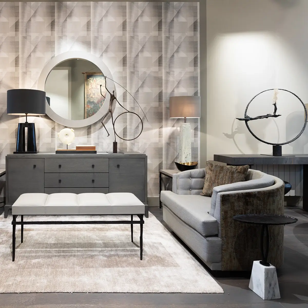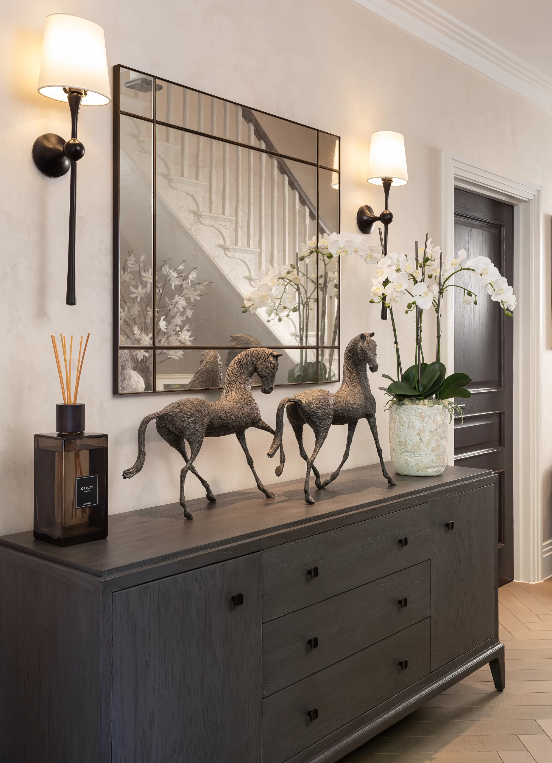Our Astor Cabinet in midnight oak finish was used by Samantha Bartlett interiors in one of their amazing signature project. See bellow how our bronze sculpture was used to maximize the space and enhance the design of the area.