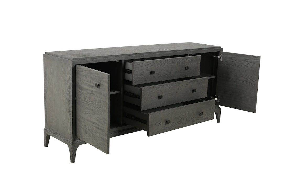 Functionality meets luxury in the Astor Cabinet Midnight Oak, with its three deep drawers and two generous cupboards providing exceptional storage. This luxury cabinet is designed to accommodate your storage needs without compromising on style, making it an ideal choice for those who value both aesthetics and practicality.
