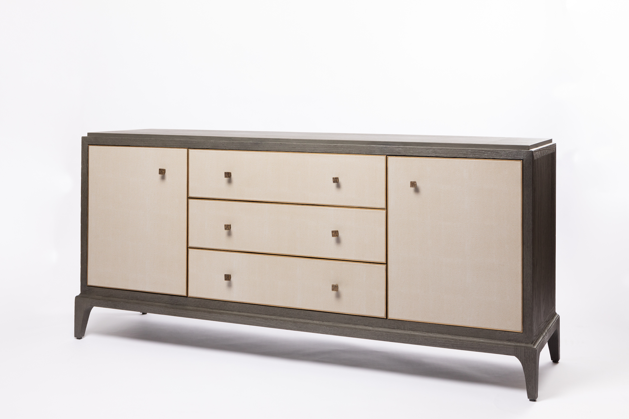 Our Shagreen Cabinet provides ample space to display lamps and personal accessories, with its three deep drawers and two cupboards offering excellent storage options.