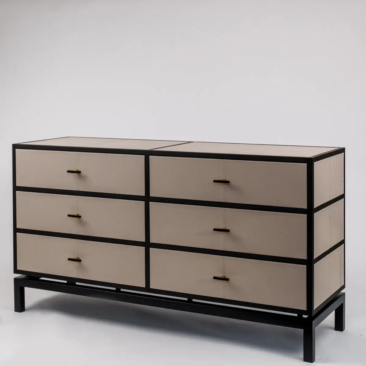 The Bertie 6 Drawer Chest Pumice Leather provides a style synonymous with effortless luxury. This material with its timeless appearance elevates the appeal of this designer Pumice Leather chest to a new level. This diverse leather collection offers exceptional and distinctive designs infusing glamour to any interiors.