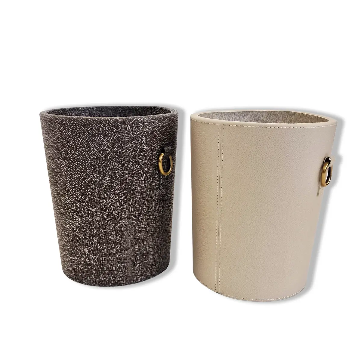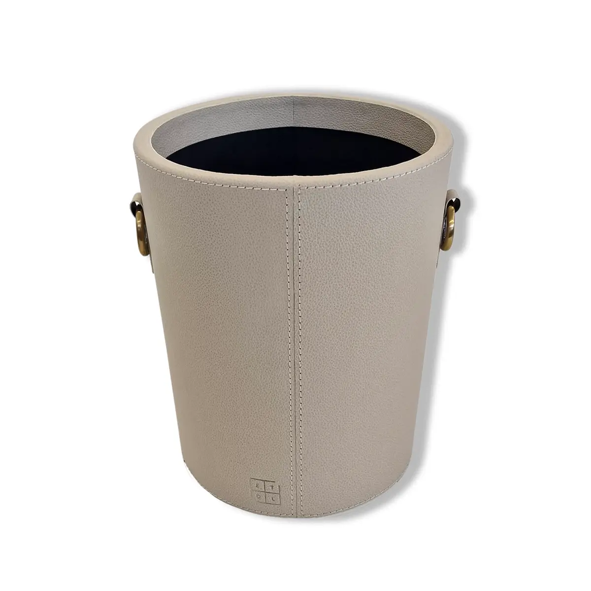 This elegant Cone Waste Bin Pumice Leather is fully lined in black piquet. It combines our pumice leather with brass detail and is the perfect addition to any room! Also available in our exclusive Grey Shagreen leather.