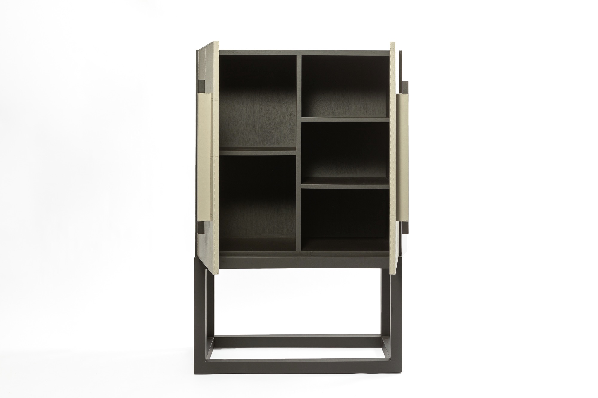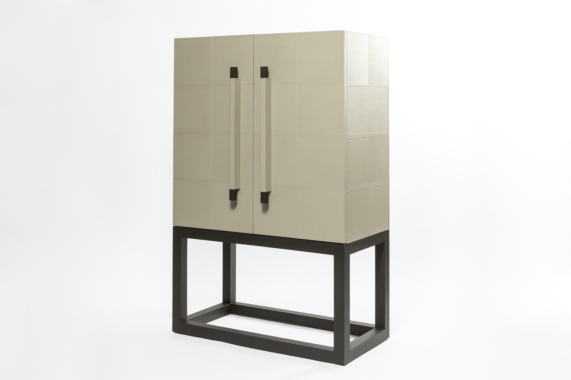 Looking for a bottle cabinet? The Linea Nera Armoire French grey leather may be the perfect solution.The two cupboards open to reveal ample storage. Other complementary items may be found in the collection, Linea Nera Table, Linea Nera Console, Linea Nera Chest and Linea Nera Cabinet.