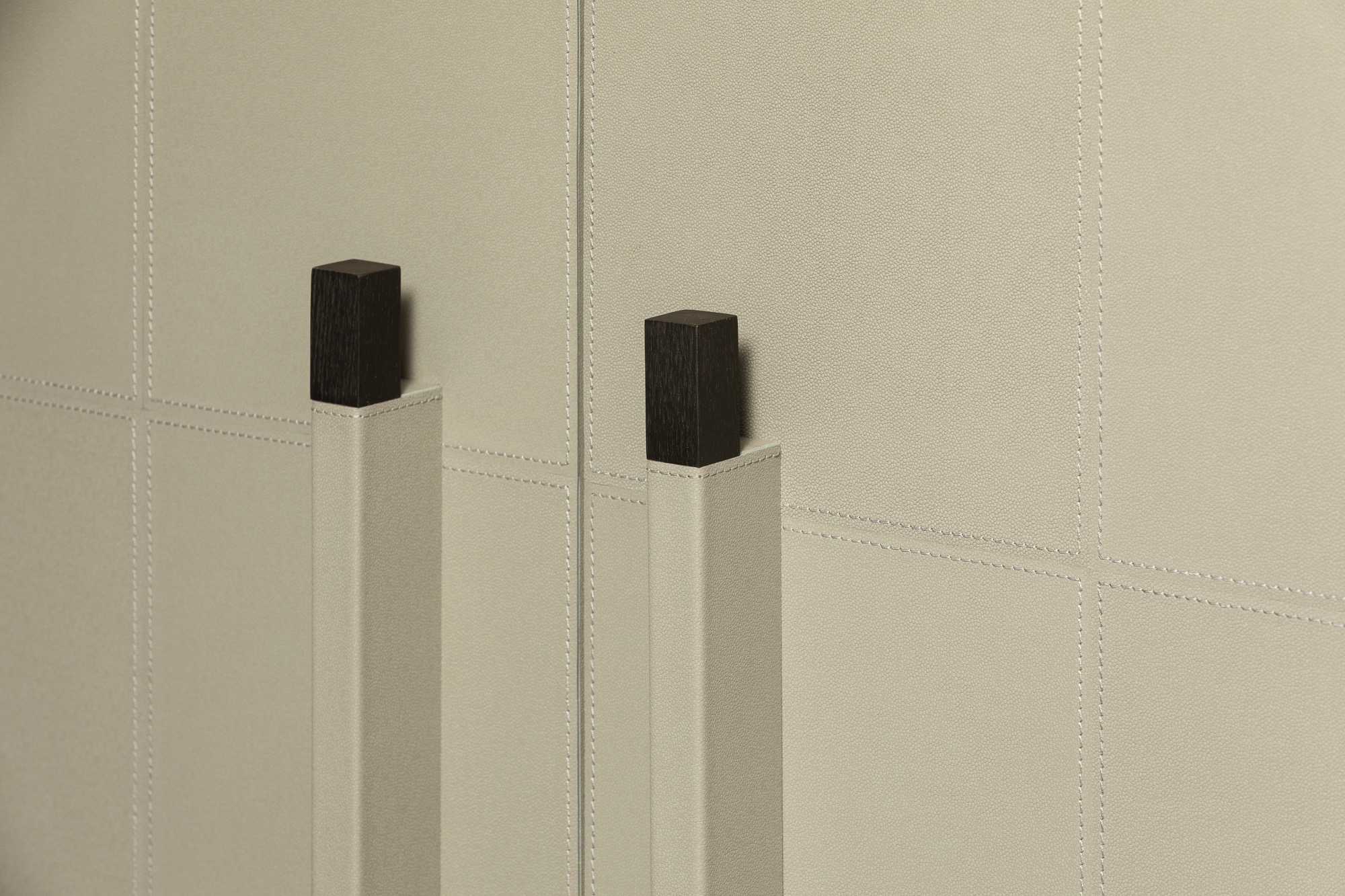 The Linea Nera Armoire French grey leather provides a style synonymous with effortless luxury. This material with its timeless appeal elevates the appeal of The Linea Nera Armoire French grey leather to a new level. Designed in house and exclusive to Eccotrading Design London. *available by order