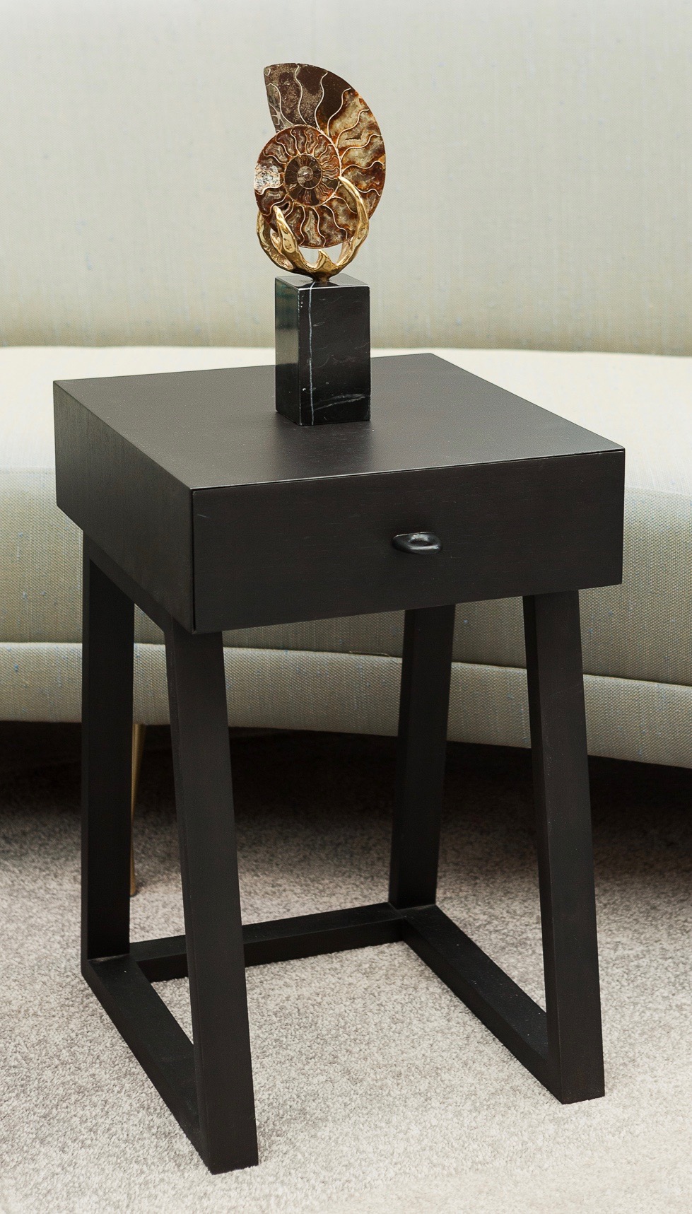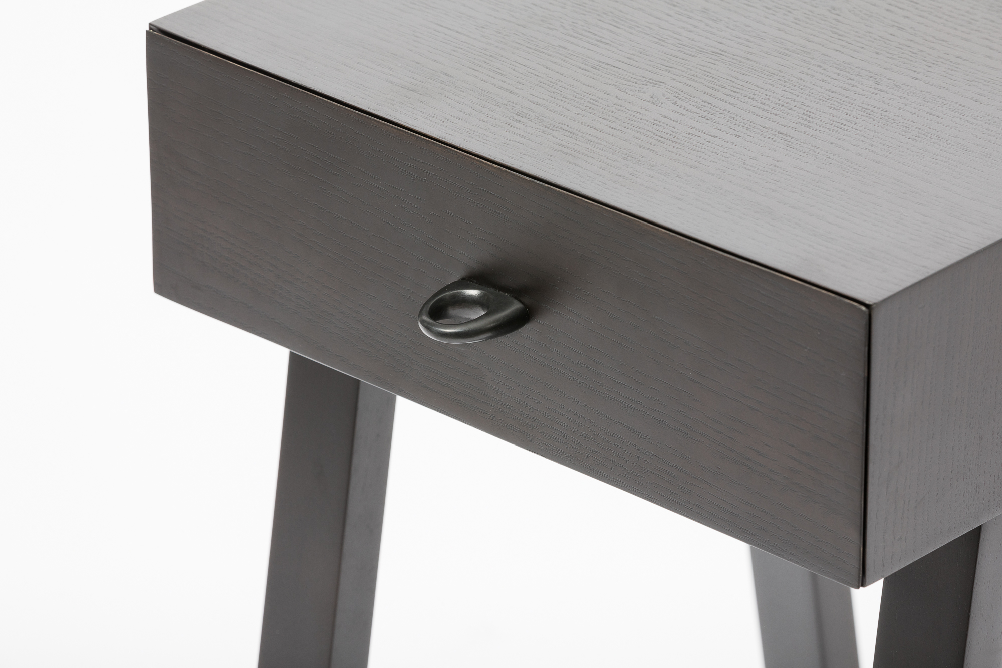 The Matte side table 35cm has been designed to be an easy addition to either a new or existing design scheme. An essential aspect of the Matte side table 35cm is the pairing of the elegant design of the base, the flush fitted drawer and our unique carbon wood colour. This colour is neither a brown, black or grey and is essentially a warm neutral suitable to a variety of interiors.