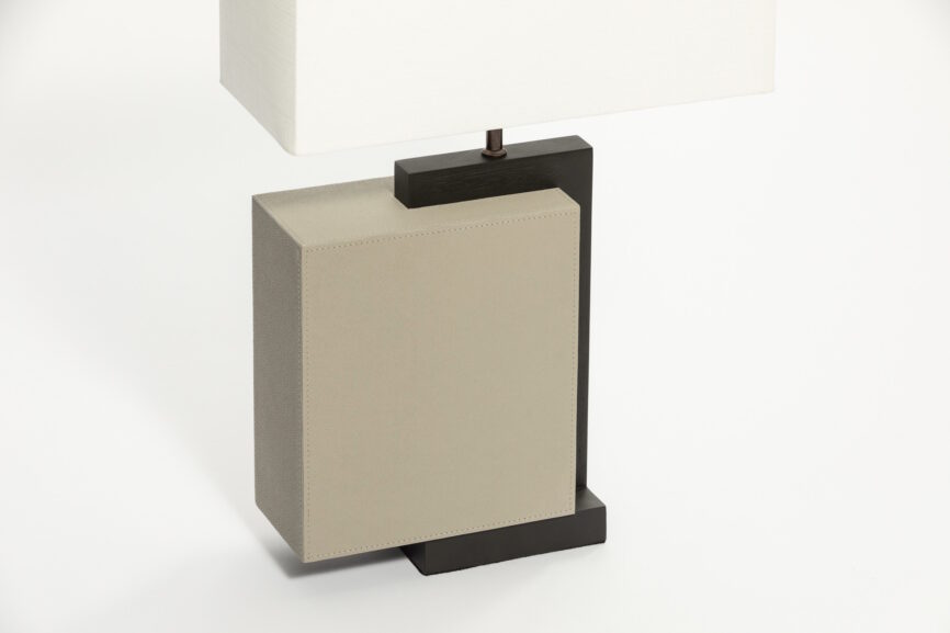 Three designs of table lamps are available in the Ralf collection. These may be supplied with a matching shade or mix the jute and cork shades to create a stunning combination. The Ralf Parbolic Lamp Leather and Cork is paired with a ‘half’ shade. Clients love that the finished depth at a little over 14cm make these ideal for the narrowest of bedside or lamp tables.