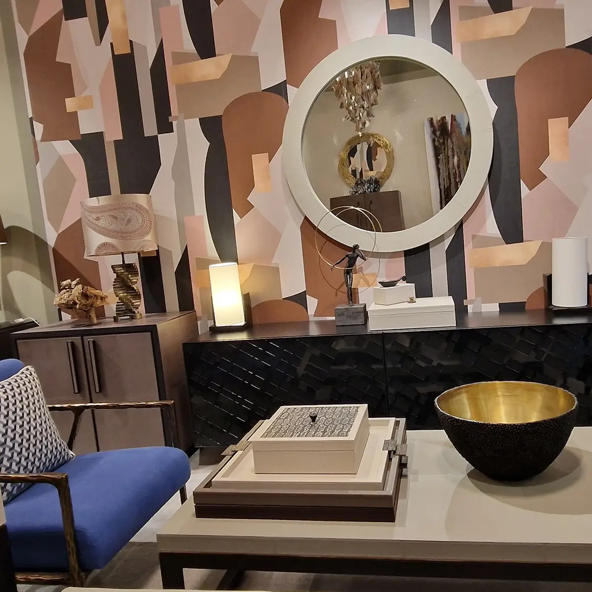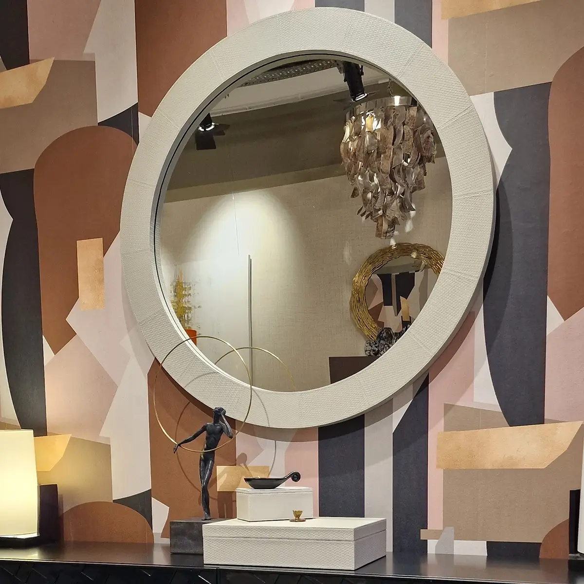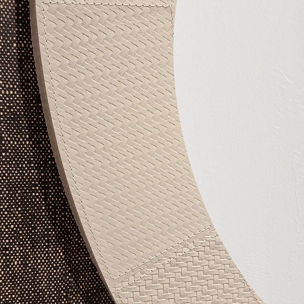 The Round Mirror Pumice woven leather woven provides a sense of opulence with its intricate textures and striking details. Let these designs create a luxurious and sensual space that will create an interior with that touch of decadence!