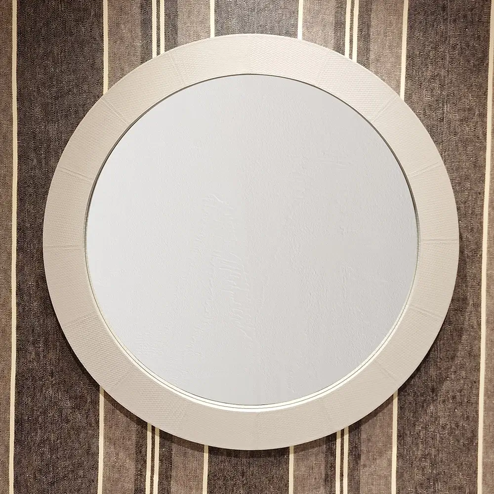 The Round Mirror Pumice woven leather is a generous and elegant mirror available in a selection of luxurious leathers. The great scale of the frame adds real impact to a room. The thickness of the frame is a generous 5cm.