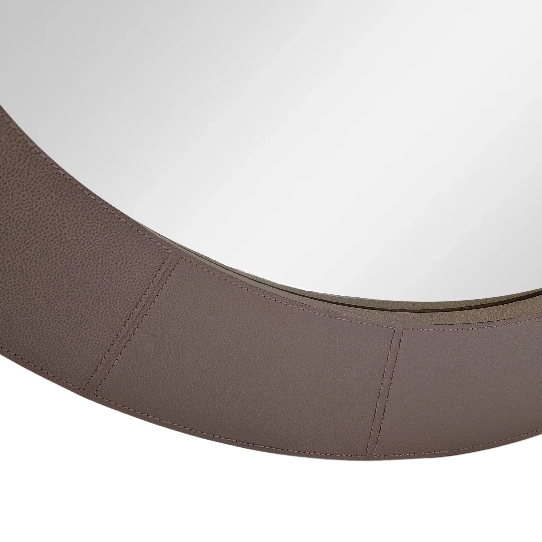 The Round Mirror Putty Leather is available as shown. Designed to complement other designs in our exclusive leather collection.