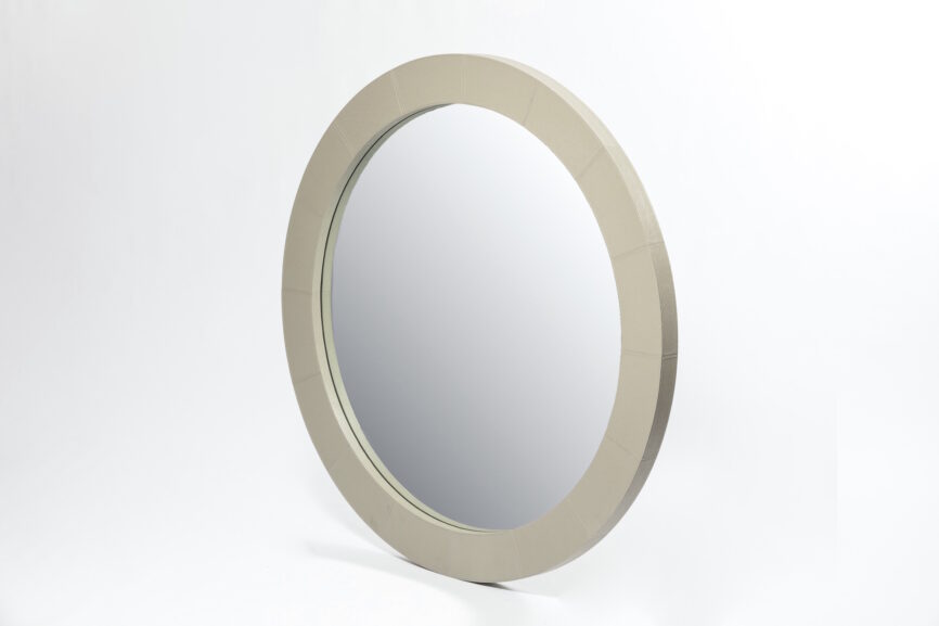 The Round Mirror Shagreen Verde leather is a generous and elegant mirror available in a selection of luxurious leathers. The great scale of the frame adds real impact to a room. The thickness of the frame is a generous 5cm.