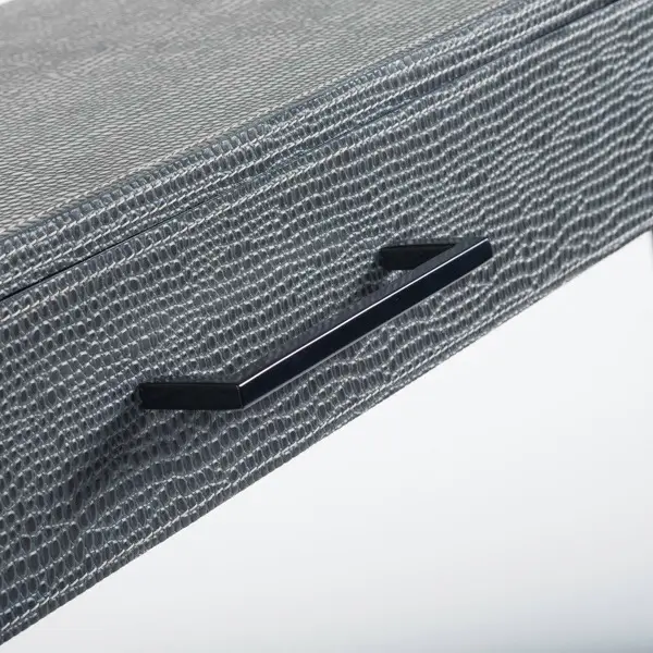 This designer leather slide console offers a sense of opulence with its intricate textures and striking details. The handles of the two drawers and frame are powder coated steel in a black bronze finish. This provides a striking contrast against this leather. The Slide console Komodo leather is the perfect addition to a hallway or living space. An eye-catching design in luxurious leather. Let these designs create a luxurious and sensual space that will create an interior with that touch of decadence!