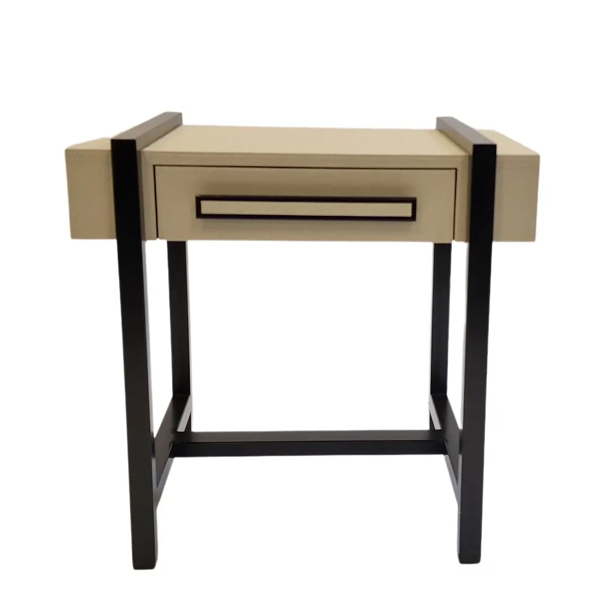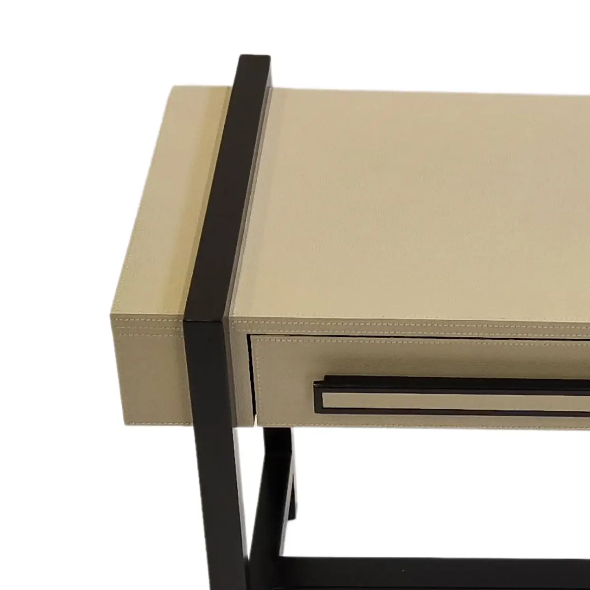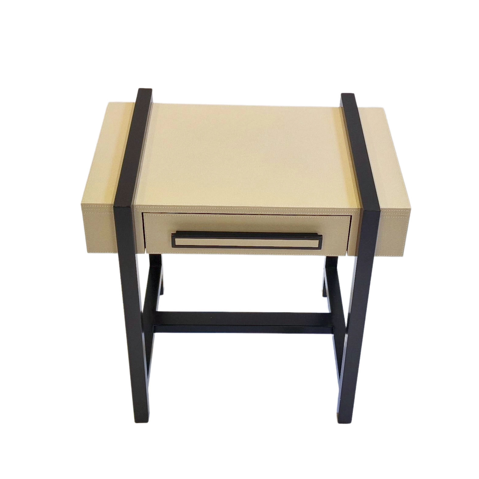 The Slide side table pumice leather offers a sense of opulence with its intricate textures and striking details. The handle of the single drawer and frame are powder coated steel in a black bronze finish. This provides a striking contrast against this leather. The Slide side table pumice leather is the perfect addition to a bedroom or living space. An eye-catching design in luxurious leather. Let these designs create a luxurious and sensual space that will create an interior with that touch of decadence!