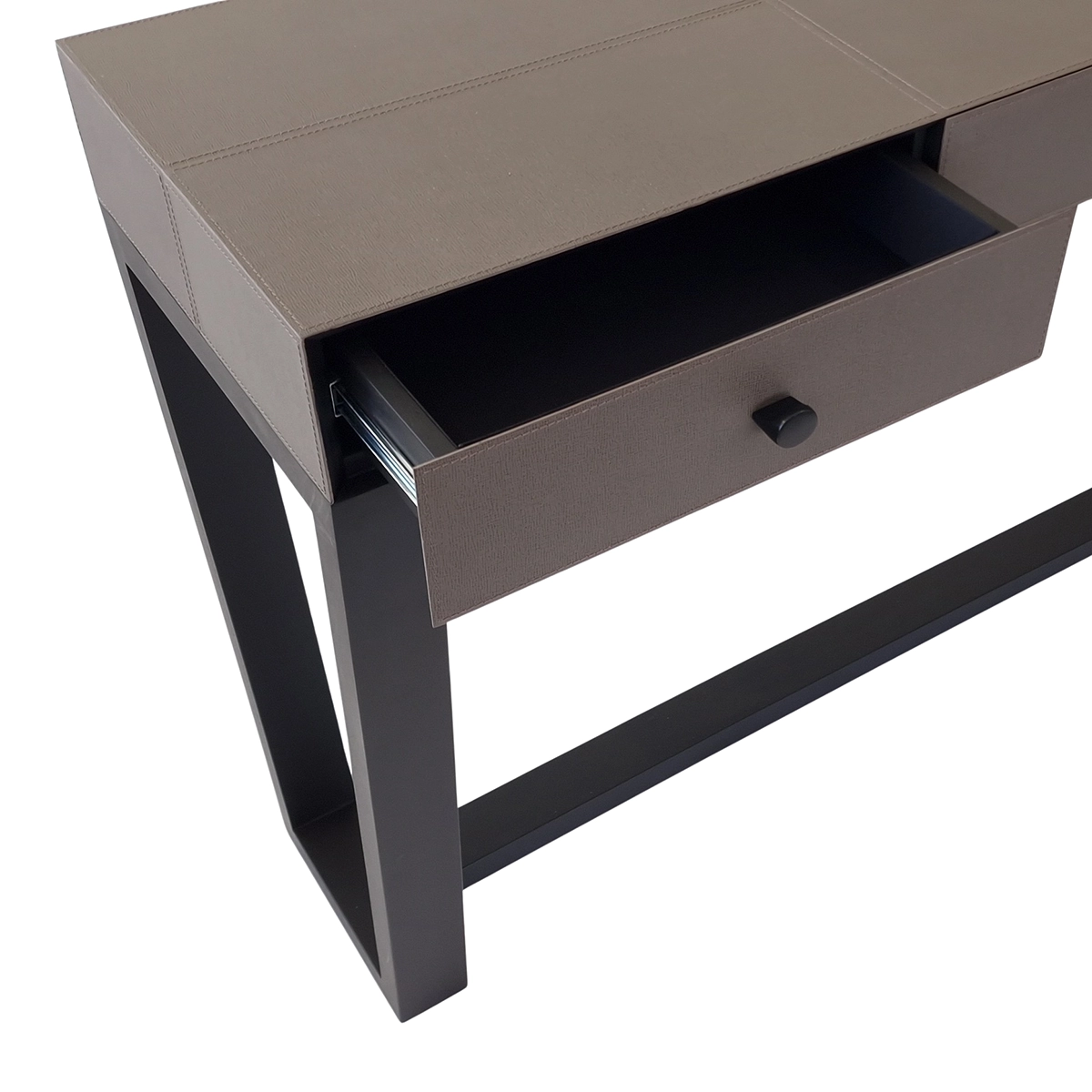 The Slim Jim console Valen leather provides a style synonymous with effortless luxury. This material with its timeless appeal elevates the appeal of Slim Jim console in Valen grey leather to a new level. This diverse leather collection offers exceptional and distinctive designs infusing glamour to any interiors.
