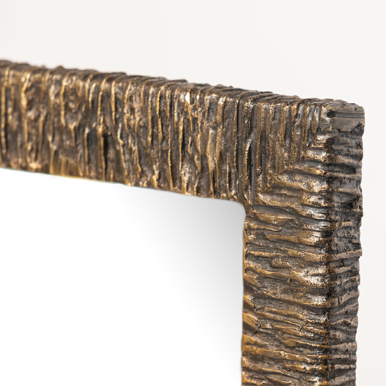 The Wode Bronze Dorato Mirror is hand cast and available in two stunning finishes. Designed to complement the Wode bronze console, The Wode bronze mirror also makes a dramatic impact if used alone. Shown here in bronze dorato. The Wode bronze mirror is also available in bronze nera which is a black hand rubbed finish.
