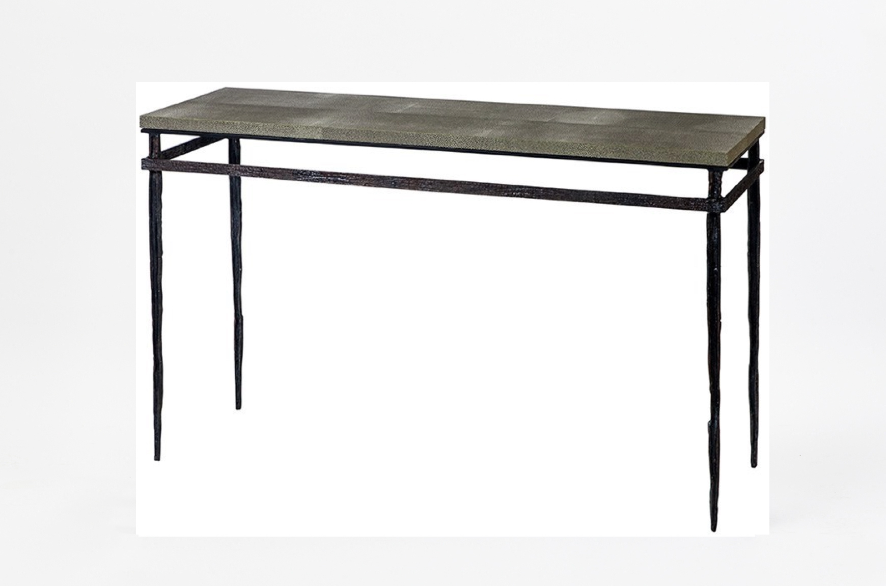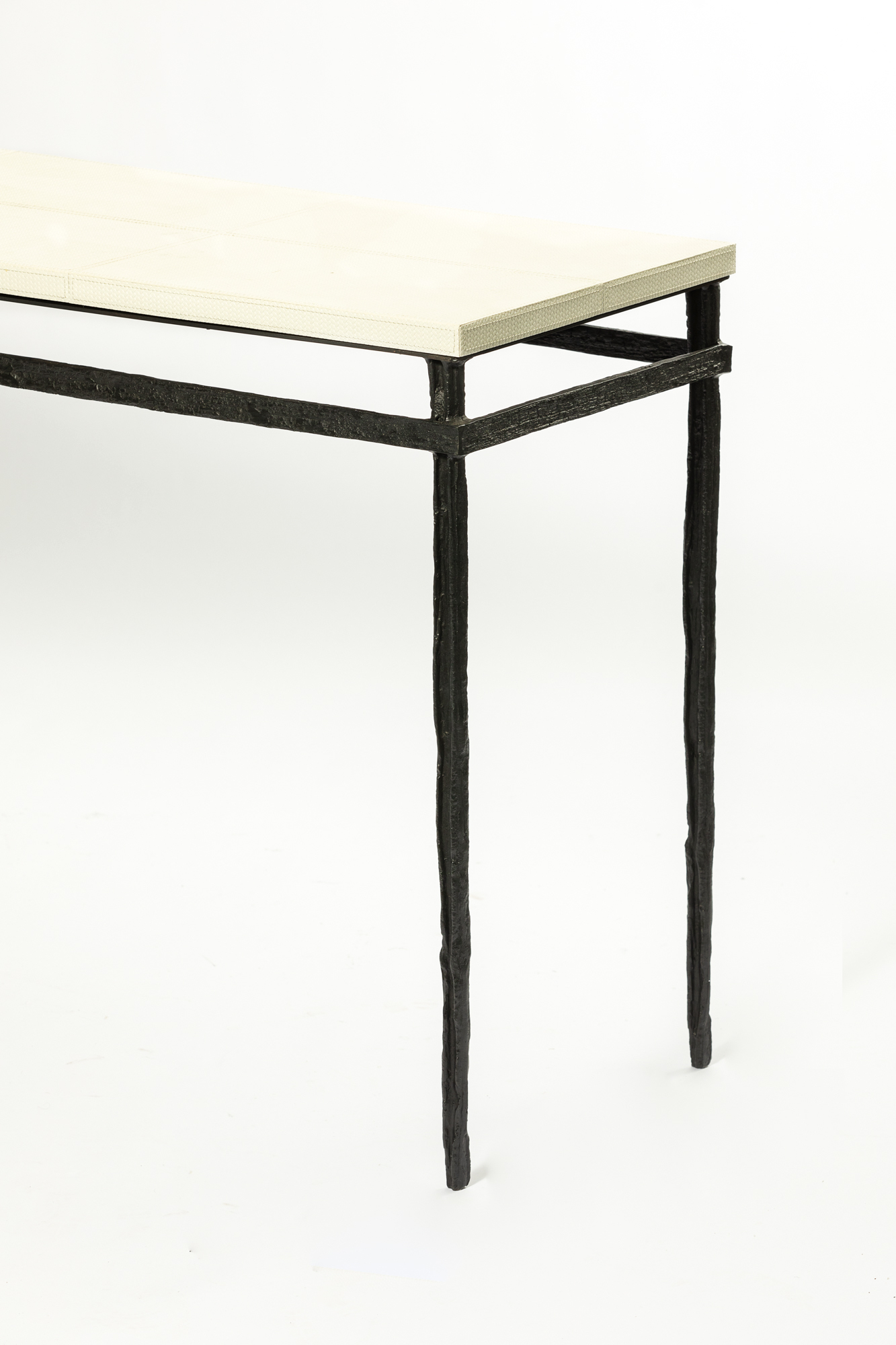 The Wode Console Bronze Nera Shagreen Leather features a base hand cast and finished in bronze nera. This console is as much art as it is furniture. The table is shown here in our exclusive shagreen leather finish. This stunning design provides timeless elegance to an interior scheme and is produced by us to our exacting standards.