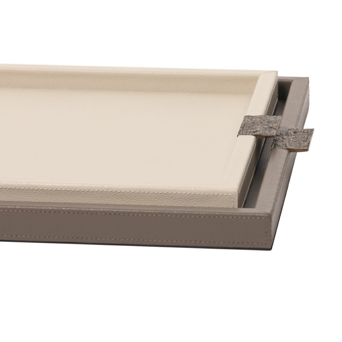 All our trays use real leather with the base lined in a black piquet. These materials offer a sense of opulence with their intricate textures and unquestionable quality.